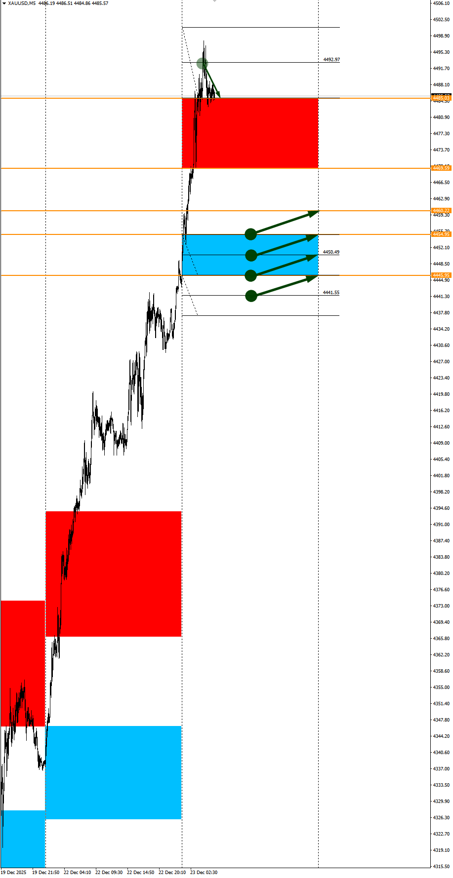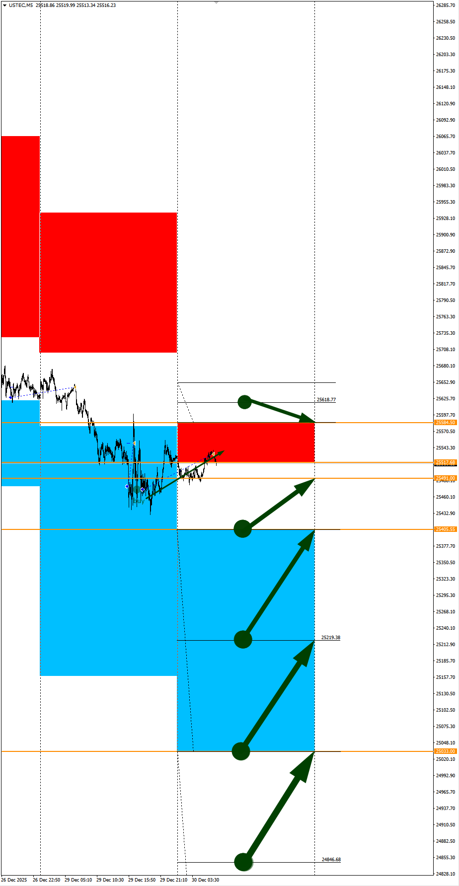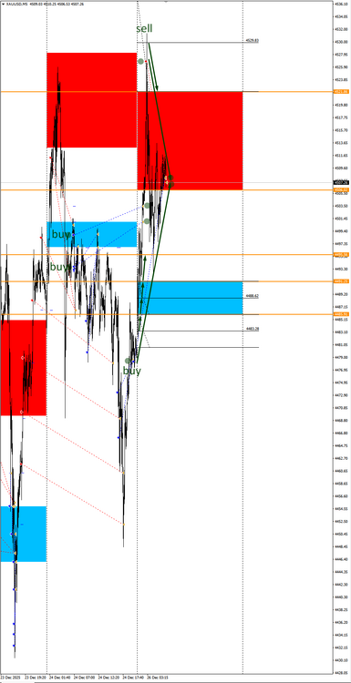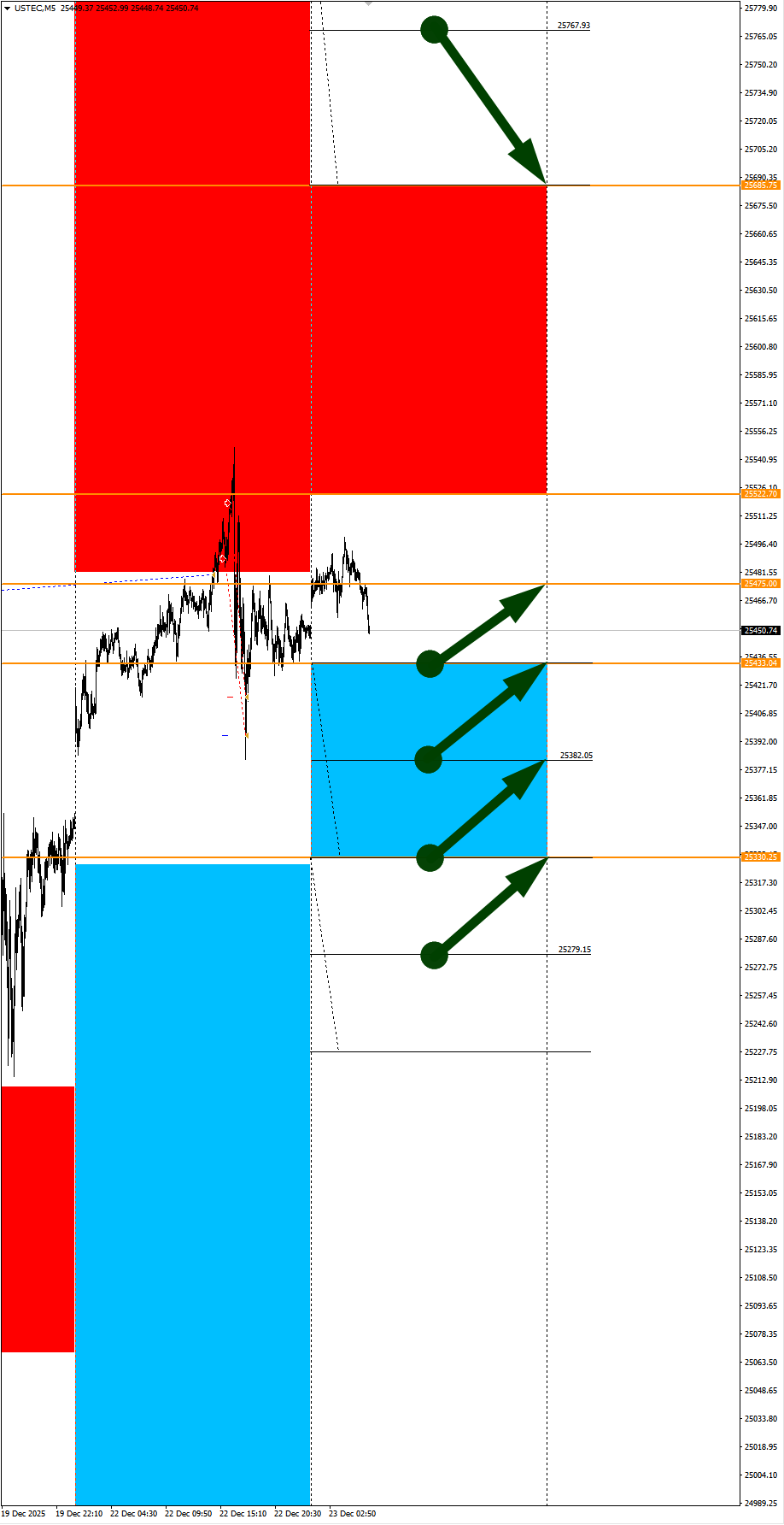 Сезонные тенденции и вероятности на пятницу 26.12.2025 Здравствуйте Уважаемые трейдеры! С Вами снова Александр Борских. Подготовил для Вас свежую информацию. Очередные сезонные тенденции на пятницу 26 декабря 2025 по основным мажорам финансовых рынков. Весь перечень анализируемых активов указан ниже в общем количестве 62 инструмента. Здесь Вы найдете активы рынка Форекс, популярные активы Московской биржи, не менее популярные активы Чикагской биржи СМЕ и мажор криптовалютного сегмента - Биткоин, за которым следуют все альткоины. Первый блок информации с зонами лимитных покупок и продаж. Данная информация включает в себя не только статистический показатель волатильности каждого актива, но и ближайшие опционные страйки с учетом премий за риск (Для верных расчетов рекомендуется просмотреть теоретическое видео в свободном доступе - Как использовать блок сезонности). А теперь сам блок информации №1: Второй блок информации с направленным вектором движения и вероятностями (внимательно обращаем внимание на цену открытия каждого актива. Обязательно для верных расчетов берем только цену открытия спотового актива). Как использовать вероятности в отношении цены открытия спотового актива - смотрим видео в открытом доступе (Как использовать блок сезонности). Данная информация с вероятностями поможет определить какова вероятность закрытия дня в отношении цены открытия этого же дня. А теперь сам блок информации №2: А теперь примеры построения блоков лимитных позиций и уточнение по сезонности с вероятностями отработки каждого актива по основным мажорам. По остальным активам, просмотрев теоретическое видео (Как использовать блок сезонности) - сможете построить лимитные блоки покупок и продаж самостоятельно. Ниже для примера продемонстрирую на сегодняшний день три основных мажора: Евро (EURUSD), Золото (XAUUSD), индекс НАСДАК (NASDAQ). EURUSD По Евро сегодня вероятность 67% к закрытию дня закрыть день выше цены открытия дня 1,1784 Зона покупок 1,1765-1,1730 с целью 1,1784. Покупки в приоритете пока фон доллара США слабый Зона продаж 1,1812-1,1856. Но новые продажи ожидаем от уровня 1,1878 и выше с целью 1,1856. В продажах сокращаем торговый объем раза в 4, т.к. тренд восходящий! XAUUSD По Золоту сегодня вероятность 67% к закрытию дня закрыть день выше цены открытия дня 4495,56 Зона покупок 4491,25-4485,91 с целью 4495,56. Все покупки от проекции 4483,28 до цели открытия 4495,56 отработали с открытия дня. Покупки в приоритете пока фон доллара США слабый Зона продаж 4506,02-4521,86. Но новые продажи ожидали от уровня 4529,83 и выше с целью 4521,86. Продажи от проекции 4529,83 до цели 4521,86 отработали с на азии. В продажах сокращаем торговый объем раза в 4, т.к. тренд восходящий! NASDAQ По индексу сегодня вероятность 73% к закрытию дня закрыть день выше цены открытия дня 25657,00 Зона покупок 25622,07-25477,75 с целью 25657,00. Часть покупок отработали с открытия дня от уровня 25622,07 с целью 25657,00. Новые покупки ожидаем от уровня 25550,04 и ниже с целями на графике. Покупки в приоритете пока фон доллара США слабый Зона продаж 25728,32-26065,00. Но новые продажи ожидаем от уровня 26233,56 и выше с целью 26065,00. В продажах сокращаем торговый объем раза в 4, т.к. тренд восходящий! А теперь новостная лента ожиданий аналитических агентств и разбор отдельных показателей на сегодняшний день, чего ожидать на основных торговых сессиях. Также укажем фон доллара США, сильный на текущий мо