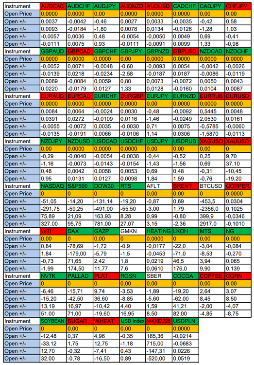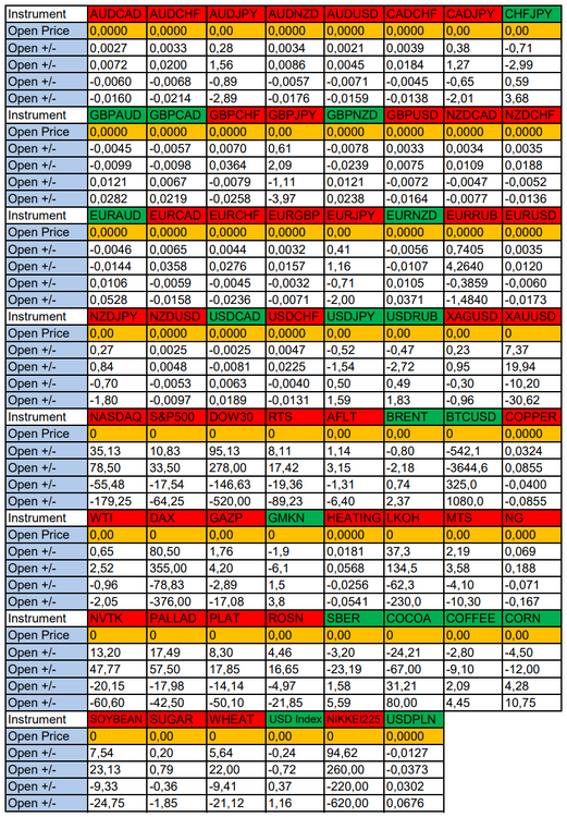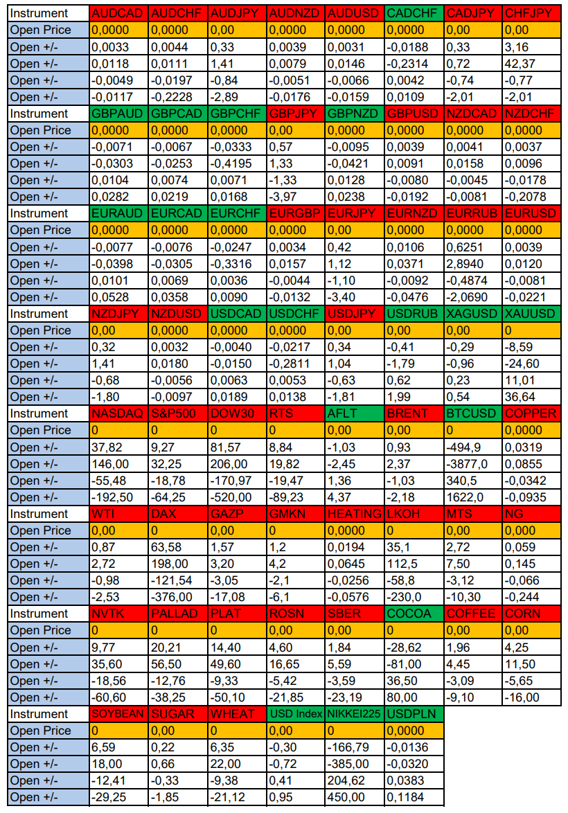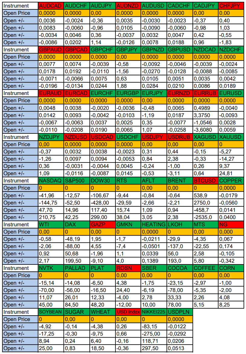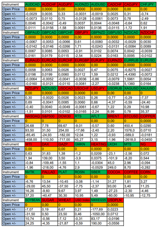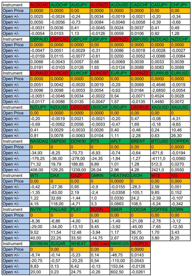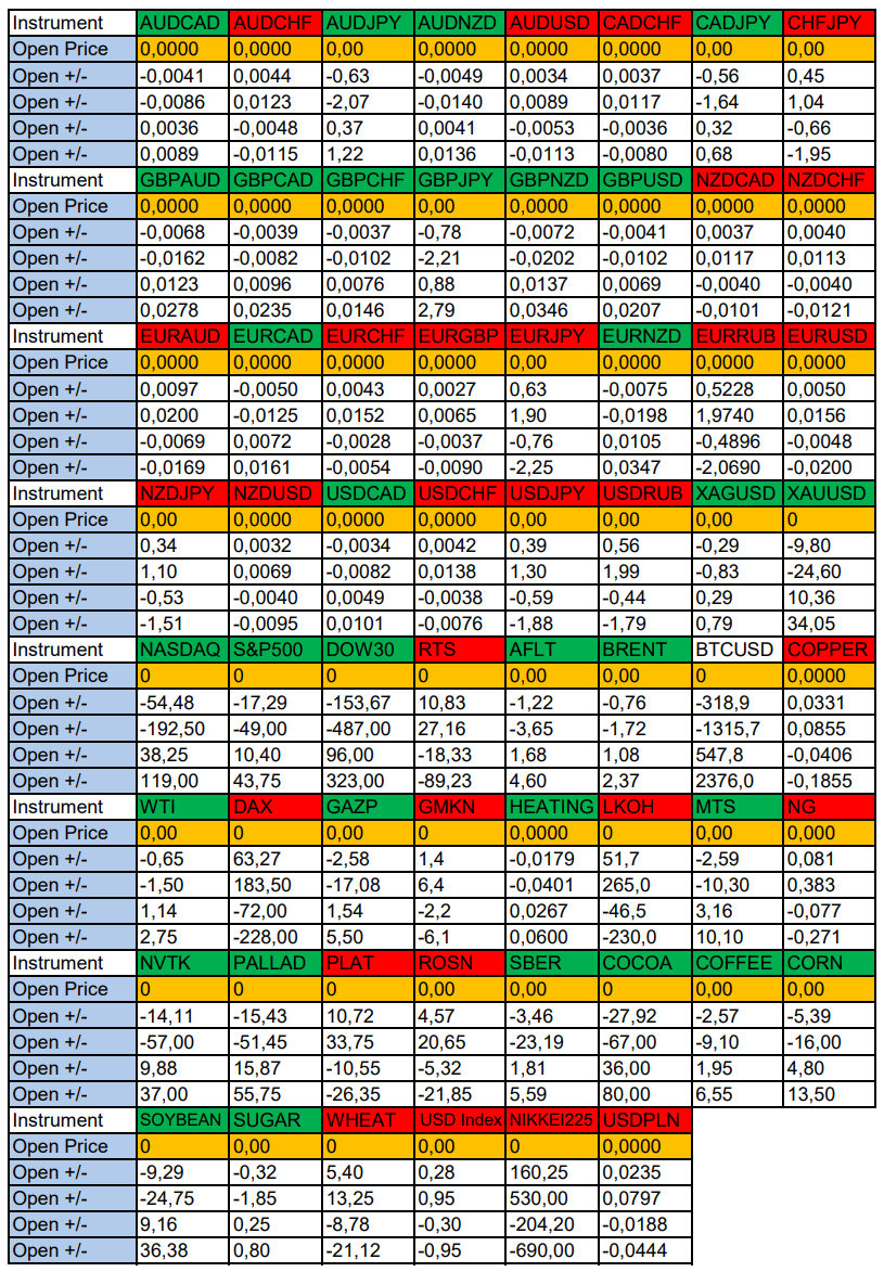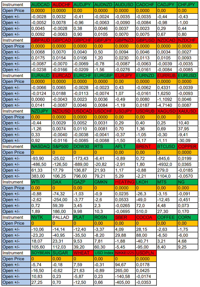 Сезонные тенденции и вероятности на понедельник 05.01.2026 Здравствуйте Уважаемые трейдеры! С Вами снова Александр Борских. Подготовил для Вас свежую информацию. Очередные сезонные тенденции на понедельник 05 января 2026 по основным мажорам финансовых рынков. Весь перечень анализируемых активов указан ниже в общем количестве 62 инструмента. Здесь Вы найдете активы рынка Форекс, популярные активы Московской биржи, не менее популярные активы Чикагской биржи СМЕ и мажор криптовалютного сегмента - Биткоин, за которым следуют все альткоины. Первый блок информации с зонами лимитных покупок и продаж. Данная информация включает в себя не только статистический показатель волатильности каждого актива, но и ближайшие опционные страйки с учетом премий за риск (Для верных расчетов рекомендуется просмотреть теоретическое видео в свободном доступе - Как использовать блок сезонности). А теперь сам блок информации №1: Второй блок информации с направленным вектором движения и вероятностями (внимательно обращаем внимание на цену открытия каждого актива. Обязательно для верных расчетов берем только цену открытия спотового актива). Как использовать вероятности в отношении цены открытия спотового актива - смотрим видео в открытом доступе (Как использовать блок сезонности). Данная информация с вероятностями поможет определить какова вероятность закрытия дня в отношении цены открытия этого же дня. А теперь сам блок информации №2: А теперь примеры построения блоков лимитных позиций и уточнение по сезонности с вероятностями отработки каждого актива по основным мажорам. По остальным активам, просмотрев теоретическое видео (Как использовать блок сезонности) - сможете построить лимитные блоки покупок и продаж самостоятельно. Ниже для примера продемонстрирую на сегодняшний день три основных мажора: Евро (EURUSD), Золото (XAUUSD), индекс НАСДАК (NASDAQ). EURUSD По Евро сегодня вероятность 67% к закрытию дня закрыть день ниже цены открытия дня 1,1706 Зона покупок 1,1631-1,1530 с целью 1,1706. Покупки в приоритете пока фон доллара США слабый Зона продаж 1,1743-1,1833. Но новые продажи ожидаем от уровня 1,1878 и выше с целью 1,1833. В продажах сокращаем торговый объем раза в 4, т.к. тренд восходящий XAUUSD По Золоту сегодня вероятность 53% к закрытию дня закрыть день выше цены открытия дня 4372,37 Зона покупок 4360,45-4335,35. Но новые покупки ожидаем от уровня 4322,82 и ниже с целью 4335,35. В покупках сокращаем торговый объем раза в 4, т.к. баланс Зона продаж 4383,73-4396,71. Но новые продажи ожидали от уровня 4403,26 с целью 4396,71 - отработали с открытия рынка на азии. В продажах сокращаем торговый объем раза в 4, т.к. баланс NASDAQ По индексу сегодня вероятность 53% к закрытию дня закрыть день выше цены открытия дня 25261,00 Зона покупок 25173,15-24748,75 с целью 25261,00. Покупки в приоритете пока фон доллара США слабый Зона продаж 25313,87-25554,25. Но новые продажи ожидаем от уровня 25675,76 и выше с целью 25554,25. В продажах сокращаем торговый объем раза в 4, т.к. тренд восходящий А теперь новостная лента ожиданий аналитических агентств и разбор отдельных показателей на сегодняшний день, чего ожидать на основных торговых сессиях. Также укажем фон доллара США, сильный на текущий момент или же слабый. От фона доллара США будет зависеть направленное движение самой пары. НОВОСТИ сегодня: Фон доллара США слабый 10:30 МСК - ожидания частичного укрепления CHF 14:00 - ожидания час