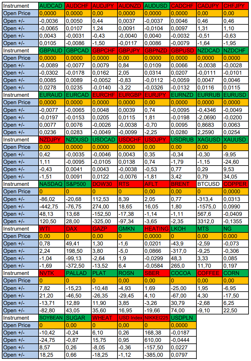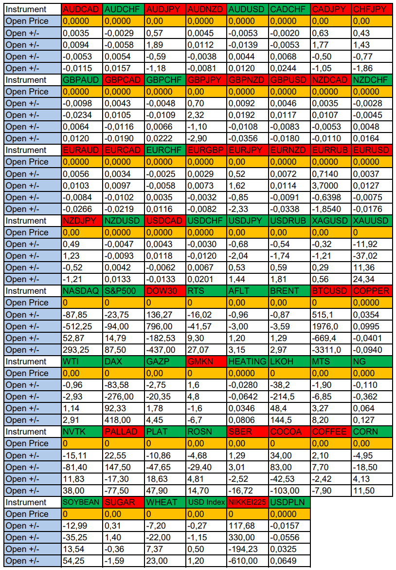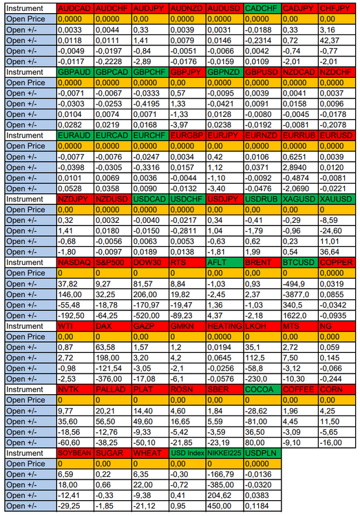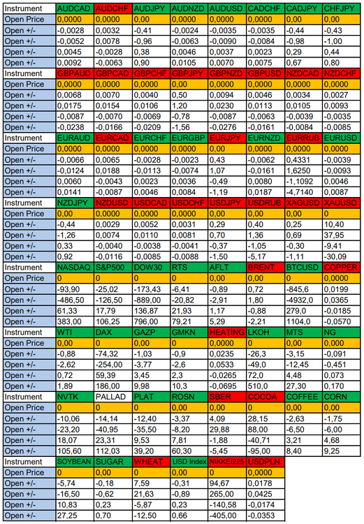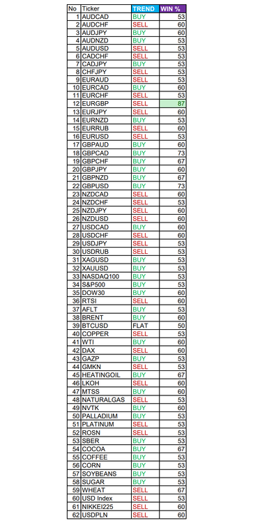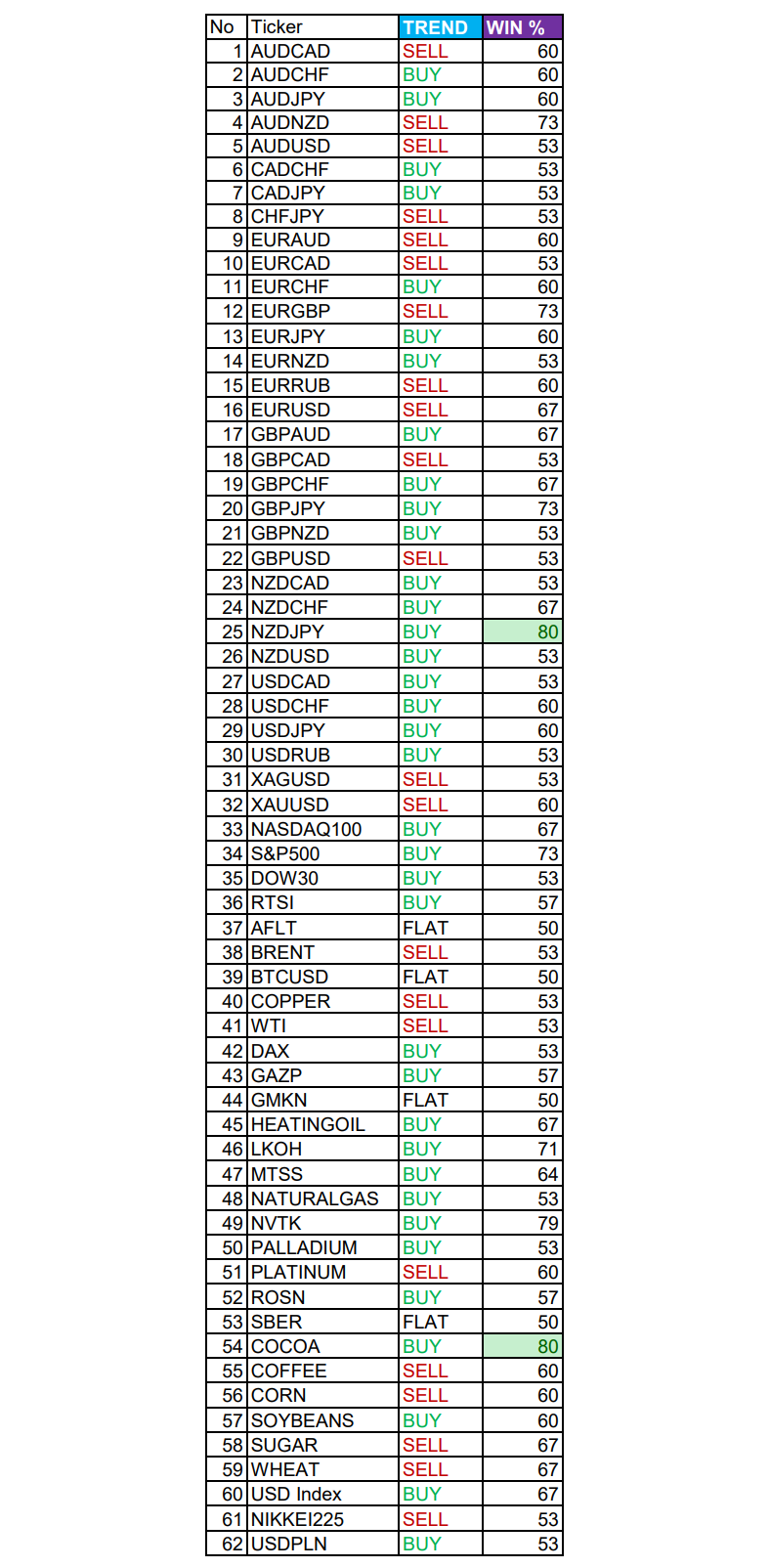 Сезонные тенденции и вероятности на вторник 13.01.2026 Здравствуйте Уважаемые трейдеры! С Вами снова Александр Борских. Подготовил для Вас свежую информацию. Очередные сезонные тенденции на вторник 13 января 2026 по основным мажорам финансовых рынков. Весь перечень анализируемых активов указан ниже в общем количестве 62 инструмента. Здесь Вы найдете активы рынка Форекс, популярные активы Московской биржи, не менее популярные активы Чикагской биржи СМЕ и мажор криптовалютного сегмента - Биткоин, за которым следуют все альткоины. Первый блок информации с зонами лимитных покупок и продаж. Данная информация включает в себя не только статистический показатель волатильности каждого актива, но и ближайшие опционные страйки с учетом премий за риск (Для верных расчетов рекомендуется просмотреть теоретическое видео в свободном доступе - Как использовать блок сезонности). А теперь сам блок информации №1: Второй блок информации с направленным вектором движения и вероятностями (внимательно обращаем внимание на цену открытия каждого актива. Обязательно для верных расчетов берем только цену открытия спотового актива). Как использовать вероятности в отношении цены открытия спотового актива - смотрим видео в открытом доступе (Как использовать блок сезонности). Данная информация с вероятностями поможет определить какова вероятность закрытия дня в отношении цены открытия этого же дня. А теперь сам блок информации №2: А теперь примеры построения блоков лимитных позиций и уточнение по сезонности с вероятностями отработки каждого актива по основным мажорам. По остальным активам, просмотрев теоретическое видео (Как использовать блок сезонности) - сможете построить лимитные блоки покупок и продаж самостоятельно. Ниже для примера продемонстрирую на сегодняшний день три основных мажора: Евро (EURUSD), Золото (XAUUSD), индекс НАСДАК (NASDAQ). EURUSD По Евро сегодня вероятность 60% к закрытию дня закрыть день выше цены открытия дня 1,1668 Зона покупок 1,1619-1,1468 с целью 1,1668. Покупки в приоритете пока фон доллара США слабый Зона продаж 1,1731-1,1922. Но новые продажи ожидаем от уровня 1,2018 и выше с целью 1,1922. В продажах сокращаем торговый объем раза в 4, т.к. тренд восходящий XAUUSD По Золоту сегодня вероятность 53% к закрытию дня закрыть день выше цены открытия дня 4599,84 Зона покупок 4589,89-4575,24. Но новые покупки ожидаем от уровня 4568,10 и ниже с целью 4575,24. В покупках сокращаем торговый объем раза в 4, т.к. баланс Зона продаж 4609,37-4633,89. Но новые продажи ожидаем от уровня 4646,15 и выше с целью 4633,89. В продажах сокращаем торговый объем раза в 4, т.к. баланс NASDAQ По индексу сегодня вероятность 53% к закрытию дня закрыть день выше цены открытия дня 25725,00 Зона покупок 25638,98-25282,25 с целью 25725,00. Покупки в приоритете пока фон доллара США слабый Зона продаж 25773,13-25845,50. Но новые продажи ожидаем от уровня 25882,06 и выше с целью 25845,50. В продажах сокращаем торговый объем раза в 4, т.к. тренд восходящий А теперь новостная лента ожиданий аналитических агентств и разбор отдельных показателей на сегодняшний день, чего ожидать на основных торговых сессиях. Также укажем фон доллара США, сильный на текущий момент или же слабый. От фона доллара США будет зависеть направленное движение самой пары. НОВОСТИ сегодня: Фон доллара США слабый 16:30 МСК - ожидания укрепления доллара США USD 16:30 - ожидания частичного ослабления CAD 18:00 - ожидания осл