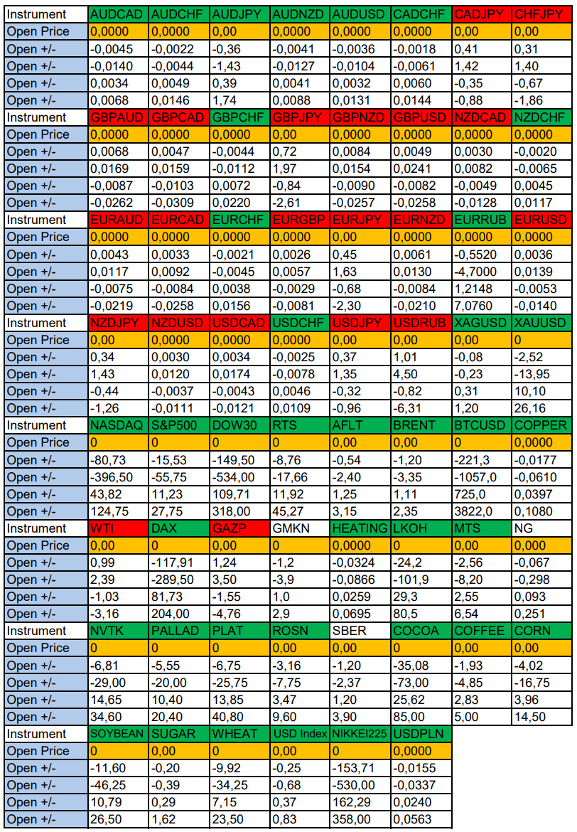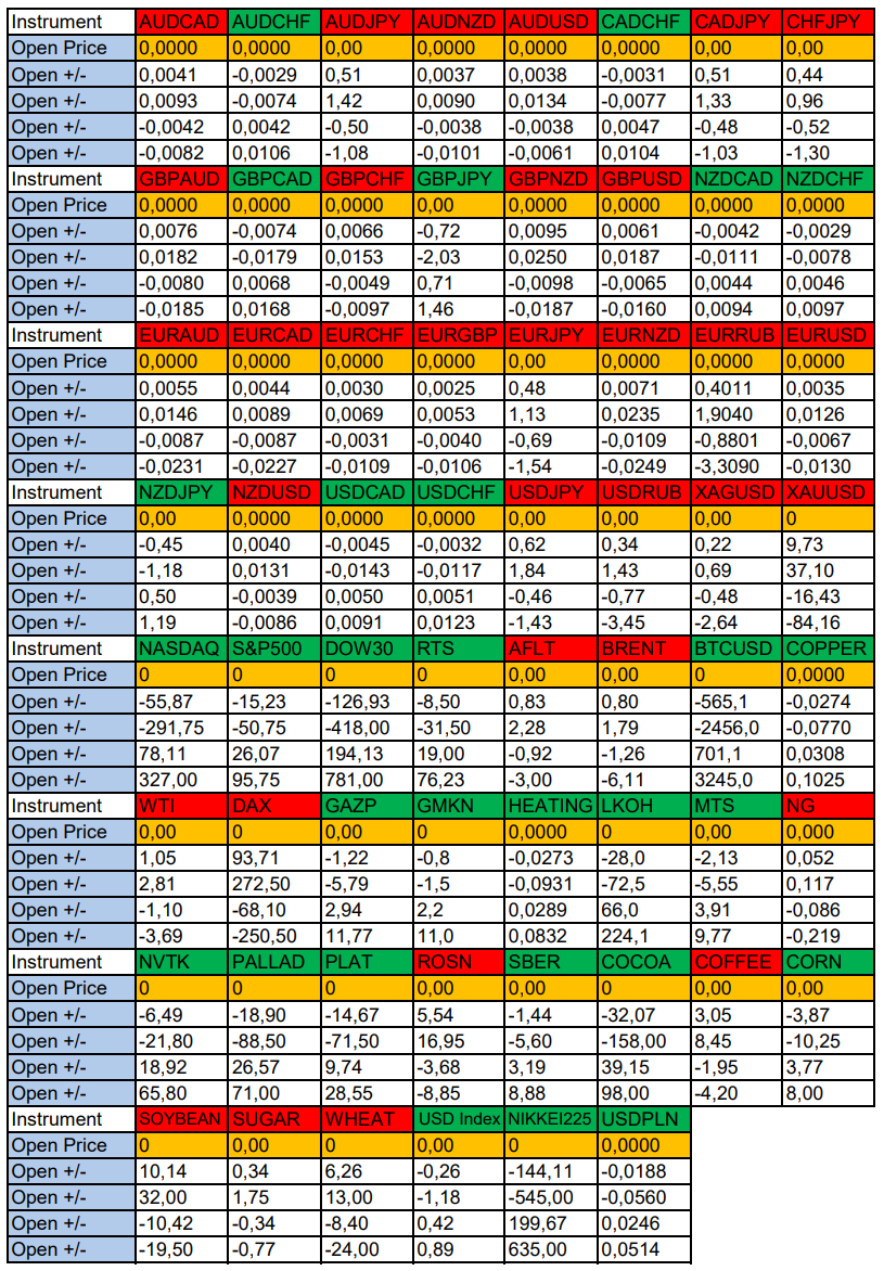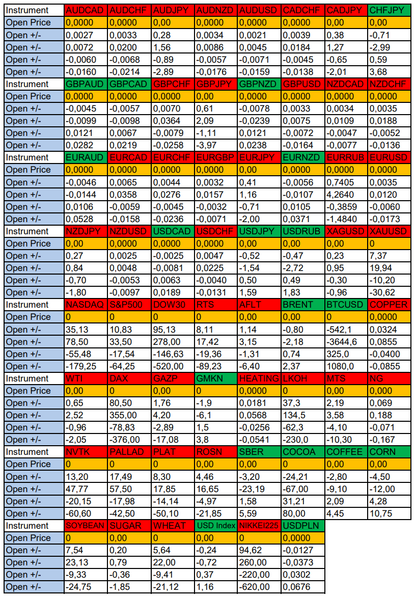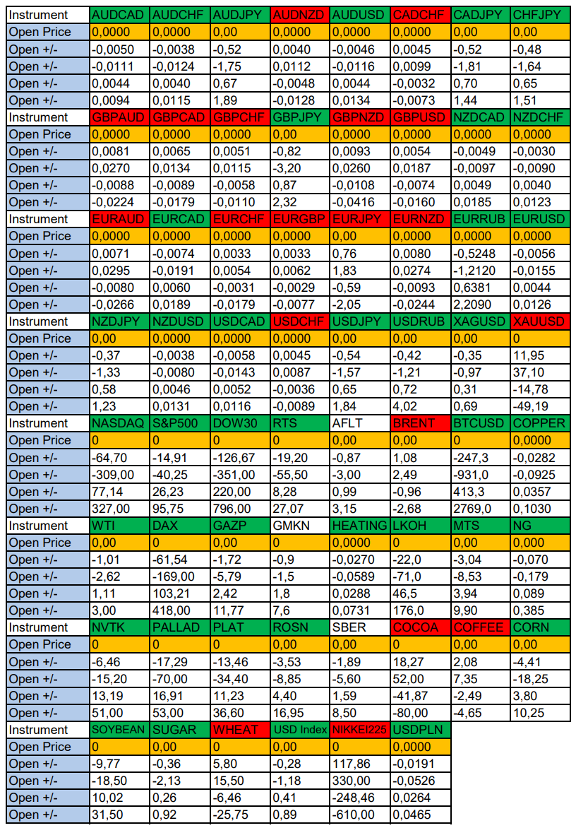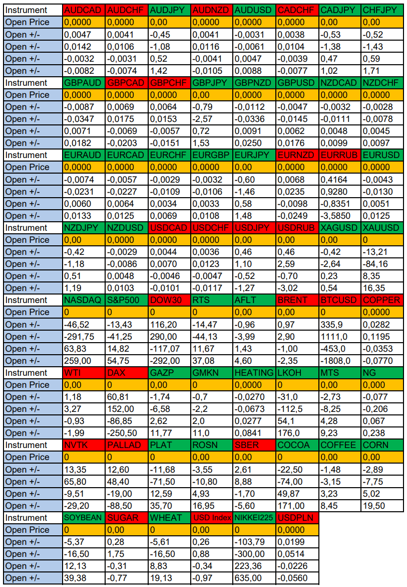 Сезонные тенденции и вероятности на вторник 13.01.2026 Здравствуйте Уважаемые трейдеры! С Вами снова Александр Борских. Подготовил для Вас свежую информацию. Очередные сезонные тенденции на вторник 13 января 2026 по основным мажорам финансовых рынков. Весь перечень анализируемых активов указан ниже в общем количестве 62 инструмента. Здесь Вы найдете активы рынка Форекс, популярные активы Московской биржи, не менее популярные активы Чикагской биржи СМЕ и мажор криптовалютного сегмента - Биткоин, за которым следуют все альткоины. Первый блок информации с зонами лимитных покупок и продаж. Данная информация включает в себя не только статистический показатель волатильности каждого актива, но и ближайшие опционные страйки с учетом премий за риск (Для верных расчетов рекомендуется просмотреть теоретическое видео в свободном доступе - Как использовать блок сезонности). А теперь сам блок информации №1: Второй блок информации с направленным вектором движения и вероятностями (внимательно обращаем внимание на цену открытия каждого актива. Обязательно для верных расчетов берем только цену открытия спотового актива). Как использовать вероятности в отношении цены открытия спотового актива - смотрим видео в открытом доступе (Как использовать блок сезонности). Данная информация с вероятностями поможет определить какова вероятность закрытия дня в отношении цены открытия этого же дня. А теперь сам блок информации №2: А теперь примеры построения блоков лимитных позиций и уточнение по сезонности с вероятностями отработки каждого актива по основным мажорам. По остальным активам, просмотрев теоретическое видео (Как использовать блок сезонности) - сможете построить лимитные блоки покупок и продаж самостоятельно. Ниже для примера продемонстрирую на сегодняшний день три основных мажора: Евро (EURUSD), Золото (XAUUSD), индекс НАСДАК (NASDAQ). EURUSD По Евро сегодня вероятность 60% к закрытию дня закрыть день выше цены открытия дня 1,1668 Зона покупок 1,1619-1,1468 с целью 1,1668. Покупки в приоритете пока фон доллара США слабый Зона продаж 1,1731-1,1922. Но новые продажи ожидаем от уровня 1,2018 и выше с целью 1,1922. В продажах сокращаем торговый объем раза в 4, т.к. тренд восходящий XAUUSD По Золоту сегодня вероятность 53% к закрытию дня закрыть день выше цены открытия дня 4599,84 Зона покупок 4589,89-4575,24. Но новые покупки ожидаем от уровня 4568,10 и ниже с целью 4575,24. В покупках сокращаем торговый объем раза в 4, т.к. баланс Зона продаж 4609,37-4633,89. Но новые продажи ожидаем от уровня 4646,15 и выше с целью 4633,89. В продажах сокращаем торговый объем раза в 4, т.к. баланс NASDAQ По индексу сегодня вероятность 53% к закрытию дня закрыть день выше цены открытия дня 25725,00 Зона покупок 25638,98-25282,25 с целью 25725,00. Покупки в приоритете пока фон доллара США слабый Зона продаж 25773,13-25845,50. Но новые продажи ожидаем от уровня 25882,06 и выше с целью 25845,50. В продажах сокращаем торговый объем раза в 4, т.к. тренд восходящий А теперь новостная лента ожиданий аналитических агентств и разбор отдельных показателей на сегодняшний день, чего ожидать на основных торговых сессиях. Также укажем фон доллара США, сильный на текущий момент или же слабый. От фона доллара США будет зависеть направленное движение самой пары. НОВОСТИ сегодня: Фон доллара США слабый 16:30 МСК - ожидания укрепления доллара США USD 16:30 - ожидания частичного ослабления CAD 18:00 - ожидания осл