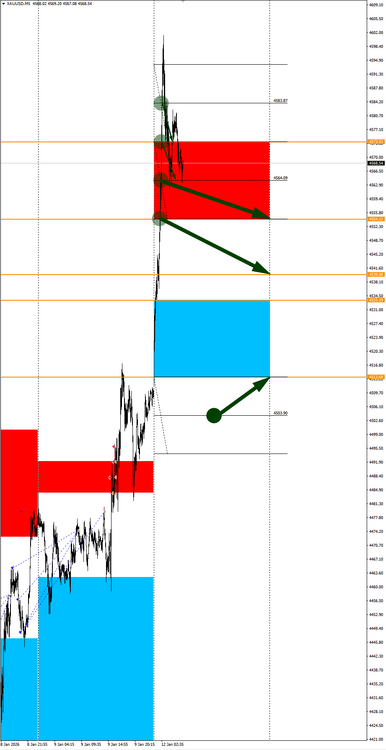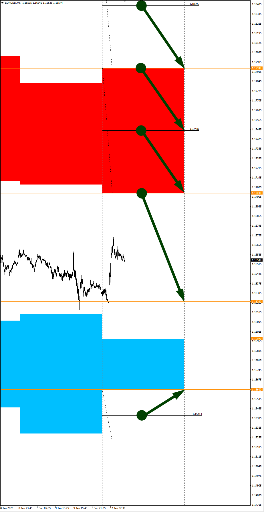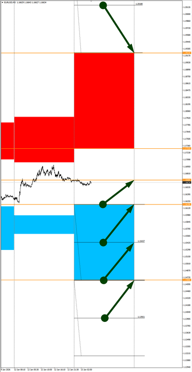 Сезонные тенденции и вероятности на понедельник 12.01.2026 Здравствуйте Уважаемые трейдеры! С Вами снова Александр Борских. Подготовил для Вас свежую информацию. Очередные сезонные тенденции на понедельник 12 января 2026 по основным мажорам финансовых рынков. Весь перечень анализируемых активов указан ниже в общем количестве 62 инструмента. Здесь Вы найдете активы рынка Форекс, популярные активы Московской биржи, не менее популярные активы Чикагской биржи СМЕ и мажор криптовалютного сегмента - Биткоин, за которым следуют все альткоины. Первый блок информации с зонами лимитных покупок и продаж. Данная информация включает в себя не только статистический показатель волатильности каждого актива, но и ближайшие опционные страйки с учетом премий за риск (Для верных расчетов рекомендуется просмотреть теоретическое видео в свободном доступе - Как использовать блок сезонности). А теперь сам блок информации №1: Второй блок информации с направленным вектором движения и вероятностями (внимательно обращаем внимание на цену открытия каждого актива. Обязательно для верных расчетов берем только цену открытия спотового актива). Как использовать вероятности в отношении цены открытия спотового актива - смотрим видео в открытом доступе (Как использовать блок сезонности). Данная информация с вероятностями поможет определить какова вероятность закрытия дня в отношении цены открытия этого же дня. А теперь сам блок информации №2: А теперь примеры построения блоков лимитных позиций и уточнение по сезонности с вероятностями отработки каждого актива по основным мажорам. По остальным активам, просмотрев теоретическое видео (Как использовать блок сезонности) - сможете построить лимитные блоки покупок и продаж самостоятельно. Ниже для примера продемонстрирую на сегодняшний день три основных мажора: Евро (EURUSD), Золото (XAUUSD), индекс НАСДАК (NASDAQ). EURUSD По Евро сегодня вероятность 67% к закрытию дня закрыть день выше цены открытия дня 1,1624 Зона продаж 1,1703-1,1794 с целью 1,1624. Продажи в приоритете пока фон доллара США сильный Зона покупок 1,1597-1,1560. Но новые покупки ожидаем от уровня 1,15414 и ниже с целью 1,1560. В покупках сокращаем торговый объем раза в 4, т.к. тренд нисходящий XAUUSD По Золоту сегодня вероятность 80% к закрытию дня закрыть день выше цены открытия дня 4539,88 Зона продаж 4554,12-4573,93 с целью 4539,88. Часть продаж отработали на азии от уровня 4583,87 с целью 4573,93; от уровня 4573,93 с целью 4564,09. Часть продаж активна от уровня 4564,09 с целью 4554,12; от уровня 4554,12 с целью 4539,88. Продажи в приоритете пока фон доллара США сильный Зона покупок 4533,39-4513,68. Но новые покупки ожидаем от уровня 4503,90 и ниже с целью 4513,68. В покупках сокращаем торговый объем раза в 4, т.к. тренд нисходящий NASDAQ По индексу сегодня вероятность 60% к закрытию дня закрыть день выше цены открытия дня 25719,00 Зона продаж 25765,13-25902,25. Но новые продажи ожидаем от уровня 25970,57 и выше с целью 25902,25. В продажах сокращаем торговый объем раза в 4, т.к. баланс Зона покупок 25664,72-25535,50. Но новые покупки ожидаем от уровня 25471,21 и ниже с целью 25535,50. В покупках сокращаем торговый объем раза в 4, т.к. баланс А теперь новостная лента ожиданий аналитических агентств и разбор отдельных показателей на сегодняшний день, чего ожидать на основных торговых сессиях. Также укажем фон доллара США, сильный на текущий момент или же слабый. От фона доллара США будет зависеть 