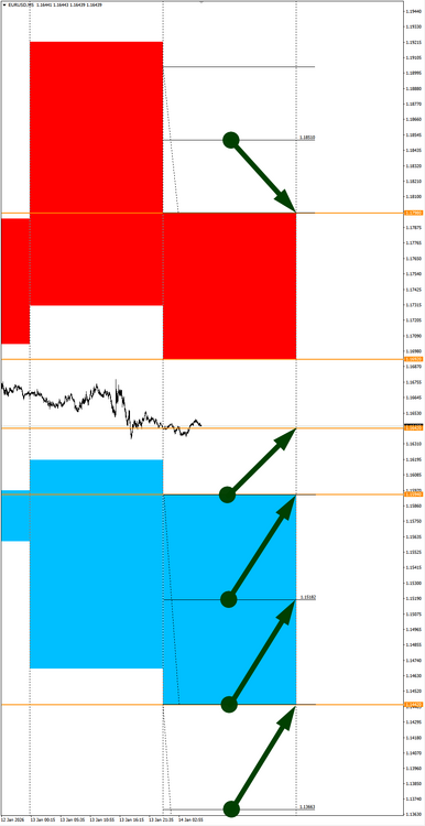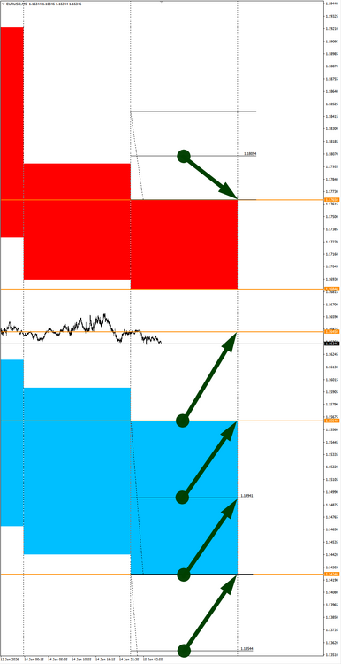 Сезонные тенденции и вероятности на четверг 15.01.2026 Здравствуйте Уважаемые трейдеры! С Вами снова Александр Борских. Подготовил для Вас свежую информацию. Очередные сезонные тенденции на четверг 15 января 2026 по основным мажорам финансовых рынков. Весь перечень анализируемых активов указан ниже в общем количестве 62 инструмента. Здесь Вы найдете активы рынка Форекс, популярные активы Московской биржи, не менее популярные активы Чикагской биржи СМЕ и мажор криптовалютного сегмента - Биткоин, за которым следуют все альткоины. Первый блок информации с зонами лимитных покупок и продаж. Данная информация включает в себя не только статистический показатель волатильности каждого актива, но и ближайшие опционные страйки с учетом премий за риск (Для верных расчетов рекомендуется просмотреть теоретическое видео в свободном доступе - Как использовать блок сезонности). А теперь сам блок информации №1: Второй блок информации с направленным вектором движения и вероятностями (внимательно обращаем внимание на цену открытия каждого актива. Обязательно для верных расчетов берем только цену открытия спотового актива). Как использовать вероятности в отношении цены открытия спотового актива - смотрим видео в открытом доступе (Как использовать блок сезонности). Данная информация с вероятностями поможет определить какова вероятность закрытия дня в отношении цены открытия этого же дня. А теперь сам блок информации №2: А теперь примеры построения блоков лимитных позиций и уточнение по сезонности с вероятностями отработки каждого актива по основным мажорам. По остальным активам, просмотрев теоретическое видео (Как использовать блок сезонности) - сможете построить лимитные блоки покупок и продаж самостоятельно. Ниже для примера продемонстрирую на сегодняшний день три основных мажора: Евро (EURUSD), Золото (XAUUSD), индекс НАСДАК (NASDAQ). EURUSD По Евро сегодня вероятность 67% к закрытию дня закрыть день ниже цены открытия дня 1,1645 Зона покупок 1,1564-1,1424 с целью 1,1645. Покупки в приоритете пока фон доллара США слабый Зона продаж 1,1684-1,1765. Но новые продажи ожидаем от уровня 1,18054 и выше с целью 1,1765. В продажах сокращаем торговый объем раза в 4, т.к. тренд восходящий XAUUSD По Золоту сегодня вероятность 53% к закрытию дня закрыть день выше цены открытия дня 4625,70 Зона продаж 4636,71-4662,34. Но новые продажи ожидаем от уровня 4675,23 и выше с целью 2662,34. В продажах сокращаем торговый объем раза в 4, т.к. баланс Зона покупок 4617,11-4601,10. Но новые покупки с открытия рынка ожидали от уровня 4593,11 и ниже с целью 4601,10, покупки отработали на азии от уровня 4593,11 до цели 4601,10. В покупках сокращаем торговый объем раза в 4, т.к. баланс NASDAQ По индексу сегодня вероятность 73% к закрытию дня закрыть день ниже цены открытия дня 25426,00 Зона покупок 25370,52-25233,50 с целью 25426,00. Покупки в приоритете пока фон доллара США слабый Зона продаж 25463,82-25572,00. Но новые продажи ожидаем от уровня 25626,33 и выше с целью 25572,00. В продажах сокращаем торговый объем раза в 4, т.к. тренд восходящий А теперь новостная лента ожиданий аналитических агентств и разбор отдельных показателей на сегодняшний день, чего ожидать на основных торговых сессиях. Также укажем фон доллара США, сильный на текущий момент или же слабый. От фона доллара США будет зависеть направленное движение самой пары. НОВОСТИ сегодня: Фон доллара США слабый 10:00 МСК - ожидания укреплени