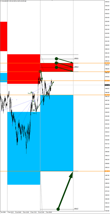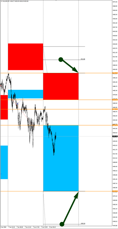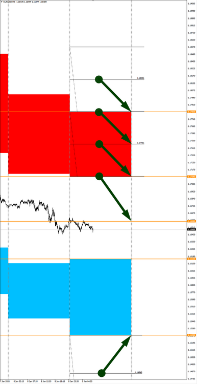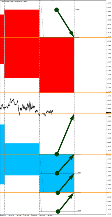 Сезонные тенденции и вероятности на четверг 08.01.2026 Здравствуйте Уважаемые трейдеры! С Вами снова Александр Борских. Подготовил для Вас свежую информацию. Очередные сезонные тенденции на четверг 08 января 2026 по основным мажорам финансовых рынков. Весь перечень анализируемых активов указан ниже в общем количестве 62 инструмента. Здесь Вы найдете активы рынка Форекс, популярные активы Московской биржи, не менее популярные активы Чикагской биржи СМЕ и мажор криптовалютного сегмента - Биткоин, за которым следуют все альткоины. Первый блок информации с зонами лимитных покупок и продаж. Данная информация включает в себя не только статистический показатель волатильности каждого актива, но и ближайшие опционные страйки с учетом премий за риск (Для верных расчетов рекомендуется просмотреть теоретическое видео в свободном доступе - Как использовать блок сезонности). А теперь сам блок информации №1: Второй блок информации с направленным вектором движения и вероятностями (внимательно обращаем внимание на цену открытия каждого актива. Обязательно для верных расчетов берем только цену открытия спотового актива). Как использовать вероятности в отношении цены открытия спотового актива - смотрим видео в открытом доступе (Как использовать блок сезонности). Данная информация с вероятностями поможет определить какова вероятность закрытия дня в отношении цены открытия этого же дня. А теперь сам блок информации №2: А теперь примеры построения блоков лимитных позиций и уточнение по сезонности с вероятностями отработки каждого актива по основным мажорам. По остальным активам, просмотрев теоретическое видео (Как использовать блок сезонности) - сможете построить лимитные блоки покупок и продаж самостоятельно. Ниже для примера продемонстрирую на сегодняшний день три основных мажора: Евро (EURUSD), Золото (XAUUSD), индекс НАСДАК (NASDAQ). EURUSD По Евро сегодня вероятность 73% к закрытию дня закрыть день ниже цены открытия дня 1,1677 Зона покупок 1,1610-1,1547 с целью 1,1677. Покупки в приоритете пока фон доллара США слабый Зона продаж 1,1712-1,1803. Но новые продажи ожидаем от уровня 1,18484 и выше с целью 1,1803. В продажах сокращаем торговый объем раза в 4, т.к. тренд восходящий XAUUSD По Золоту сегодня вероятность 67% к закрытию дня закрыть день ниже цены открытия дня 4463,12 Зона покупок 4446,69-4378,96. Но новые покупки ожидаем от уровня 4345,26 и ниже с целью 4378,96. В покупках сокращаем торговый объем раза в 4, т.к. баланс Зона продаж 4472,85-4500,22. Но новые продажи ожидаем от уровня 4513,86 и выше с целью 4500,22. В продажах сокращаем торговый объем раза в 4, т.к. баланс NASDAQ По индексу сегодня вероятность 73% к закрытию дня закрыть день выше цены открытия дня 25638,00 Зона покупок 25582,13-25346,25 с целью 25638,00. Покупки в приоритете пока фон доллара США слабый Зона продаж 25716,11-25965,00. Но новые продажи ожидаем от уровня 26089,94 и выше с целью 25965,00. В продажах сокращаем торговый объем раза в 4, т.к. тренд восходящий А теперь новостная лента ожиданий аналитических агентств и разбор отдельных показателей на сегодняшний день, чего ожидать на основных торговых сессиях. Также укажем фон доллара США, сильный на текущий момент или же слабый. От фона доллара США будет зависеть направленное движение самой пары. НОВОСТИ сегодня: Фон доллара США слабый 10:30 МСК - ожидания частичного укрепления CHF 16:30 - ожидания ослабления доллара США USD 16:30 - ожидания ча