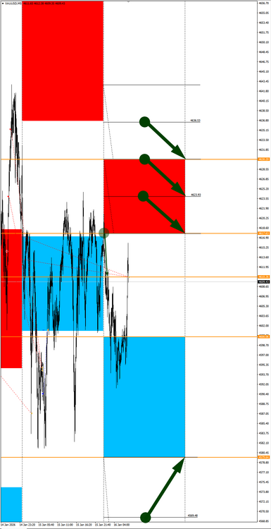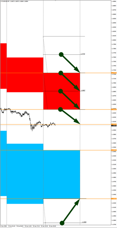 Сезонные тенденции и вероятности на пятницу 16.01.2026 Здравствуйте Уважаемые трейдеры! С Вами снова Александр Борских. Подготовил для Вас свежую информацию. Очередные сезонные тенденции на пятницу 16 января 2026 по основным мажорам финансовых рынков. Весь перечень анализируемых активов указан ниже в общем количестве 62 инструмента. Здесь Вы найдете активы рынка Форекс, популярные активы Московской биржи, не менее популярные активы Чикагской биржи СМЕ и мажор криптовалютного сегмента - Биткоин, за которым следуют все альткоины. Первый блок информации с зонами лимитных покупок и продаж. Данная информация включает в себя не только статистический показатель волатильности каждого актива, но и ближайшие опционные страйки с учетом премий за риск (Для верных расчетов рекомендуется просмотреть теоретическое видео в свободном доступе - Как использовать блок сезонности). А теперь сам блок информации №1: Второй блок информации с направленным вектором движения и вероятностями (внимательно обращаем внимание на цену открытия каждого актива. Обязательно для верных расчетов берем только цену открытия спотового актива). Как использовать вероятности в отношении цены открытия спотового актива - смотрим видео в открытом доступе (Как использовать блок сезонности). Данная информация с вероятностями поможет определить какова вероятность закрытия дня в отношении цены открытия этого же дня. А теперь сам блок информации №2: А теперь примеры построения блоков лимитных позиций и уточнение по сезонности с вероятностями отработки каждого актива по основным мажорам. По остальным активам, просмотрев теоретическое видео (Как использовать блок сезонности) - сможете построить лимитные блоки покупок и продаж самостоятельно. Ниже для примера продемонстрирую на сегодняшний день три основных мажора: Евро (EURUSD), Золото (XAUUSD), индекс НАСДАК (NASDAQ). EURUSD По Евро сегодня вероятность 73% к закрытию дня закрыть день ниже цены открытия дня 1,1609 Зона продаж 1,1644-1,1729 с целью 1,1609. Продажи в приоритете пока фон доллара США сильный Зона покупок 1,1549-1,1436. Но новые покупки ожидаем от уровня 1,1380 и ниже с целью 1,1436. В покупках сокращаем торговый объем раза в 4, т.к. тренд нисходящий XAUUSD По Золоту сегодня вероятность 53% к закрытию дня закрыть день ниже цены открытия дня 4610,26 Зона продаж 4617,63-4630,20. Часть продажи отработали с открытия рынка от уровня 4617,63 до цели 4610,26. Новые продажи ожидаем от уровня 4623,93 и выше с целями на графике. Продажи в приоритете пока фон доллара США сильный Зона покупок 4600,06-4579,64. Но новые покупки ожидаем от уровня 4569,48 и ниже с целью 4579,64. В покупках сокращаем торговый объем раза в 4, т.к. тренд нисходящий NASDAQ По индексу сегодня вероятность 53% к закрытию дня закрыть день ниже цены открытия дня 25571,00 Зона продаж 25606,13-25649,50. Но новые продажи ожидаем от уровня 25671,33 и выше с целью 25649,50. В продажах сокращаем торговый объем раза в 4, т.к. баланс Зона покупок 25515,52-25391,75. Но новые покупки ожидаем от уровня 25330,01 и ниже с целью 25391,75. В покупках сокращаем торговый объем раза в 4, т.к. баланс А теперь новостная лента ожиданий аналитических агентств и разбор отдельных показателей на сегодняшний день, чего ожидать на основных торговых сессиях. Также укажем фон доллара США, сильный на текущий момент или же слабый. От фона доллара США будет зависеть направленное движение самой пары. НОВОСТИ сегодн