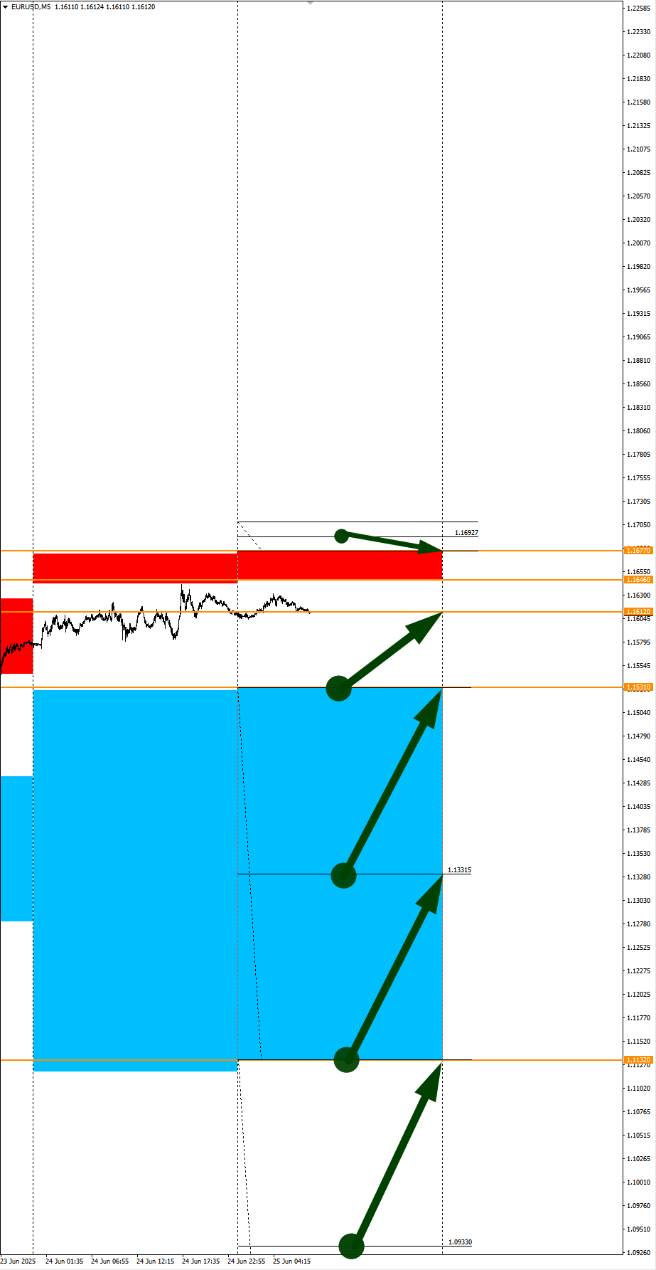 2е выступление Дж Пауэлла. Сезонные тенденции и вероятности на Среду 25.06.2025 Здравствуйте Уважаемые трейдеры! С Вами снова Александр Борских. Подготовил для Вас свежую информацию. Очередные сезонные тенденции на Среду 25 Июня 2025 по основным мажорам финансовых рынков. Весь перечень анализируемых активов указан ниже в общем количестве 62 инструмента. Здесь Вы найдете активы рынка Форекс, популярные активы Московской биржи, не менее популярные активы Чикагской биржи СМЕ и мажор криптовалютного сегмента - Биткоин, за которым следуют все альткоины. Первый блок информации с зонами лимитных покупок и продаж. Данная информация включает в себя не только статистический показатель волатильности каждого актива, но и ближайшие опционные страйки с учетом премий за риск (Для верных расчетов рекомендуется просмотреть теоретическое видео в свободном доступе - Как использовать блок сезонности). А теперь сам блок информации №1: Второй блок информации с направленным вектором движения и вероятностями (внимательно обращаем внимание на цену открытия каждого актива. Обязательно для верных расчетов берем только цену открытия спотового актива). Как использовать вероятности в отношении цены открытия спотового актива - смотрим видео в открытом доступе (Как использовать блок сезонности). Данная информация с вероятностями поможет определить какова вероятность закрытия дня в отношении цены открытия этого же дня. А теперь сам блок информации №2: А теперь примеры построения блоков лимитных позиций и уточнение по сезонности с вероятностями отработки каждого актива по основным мажорам. По остальным активам, просмотрев теоретическое видео (Как использовать блок сезонности) - сможете построить лимитные блоки покупок и продаж самостоятельно. Ниже для примера продемонстрирую на сегодняшний день три основных мажора: Евро (EURUSD), Золото (XAUUSD), индекс НАСДАК (NASDAQ). EURUSD По Евро сегодня вероятность 53% к закрытию дня закрыть день ниже цены открытия дня 1,1612. Зона покупок 1,1531-1,1132 с целью 1,1612. Покупки в приоритете пока фон доллара США слабый. Зона продаж 1,1646-1,1677. Но новые продажи ожидаем от уровня 1,16927 и выше с целью 1,1677. В продажах сокращаем торговый объем раза в 4, т.к. тренд восходящий. XAUUSD По Золоту сегодня вероятность 67% к закрытию дня закрыть день выше цены открытия дня 3323,99. Зона покупок 3317,11-3301,70. Но новые покупки ожидаем от уровня 3294,07 и ниже с целью 3301,70. В покупках сокращаем торговый объем раза в 4, т.к. баланс. Зона продаж 3340,61-3428,83. Но новые продажи ожидаем от уровня 3472,77 и выше с целью 3428,83. В продажах сокращаем торговый объем раза в 4, т.к. баланс. NASDAQ По индексу сегодня вероятность 53% к закрытию дня закрыть день ниже цены открытия дня 22228,00. Зона покупок 22144,32-21977,25 с целью 22228,00. Покупки в приоритете пока фон доллара США слабый. Зона продаж 22304,27-22688,75. Но новые продажи ожидаем от уровня 22881,94 и выше с целью 22688,75. В продажах сокращаем торговый объем раза в 4, т.к. общий тренд все еще восходящий. А теперь новостная лента ожиданий аналитических агентств и разбор отдельных показателей на сегодняшний день, чего ожидать на основных торговых сессиях. Также укажем фон доллара США, сильный на текущий момент или же слабый. От фона доллара США будет зависеть направленное движение самой пары. НОВОСТИ сегодня: Фон доллара США слабый 10:00 МСК - ожидания частичного ослабления EUR 15:30 - ожидания час