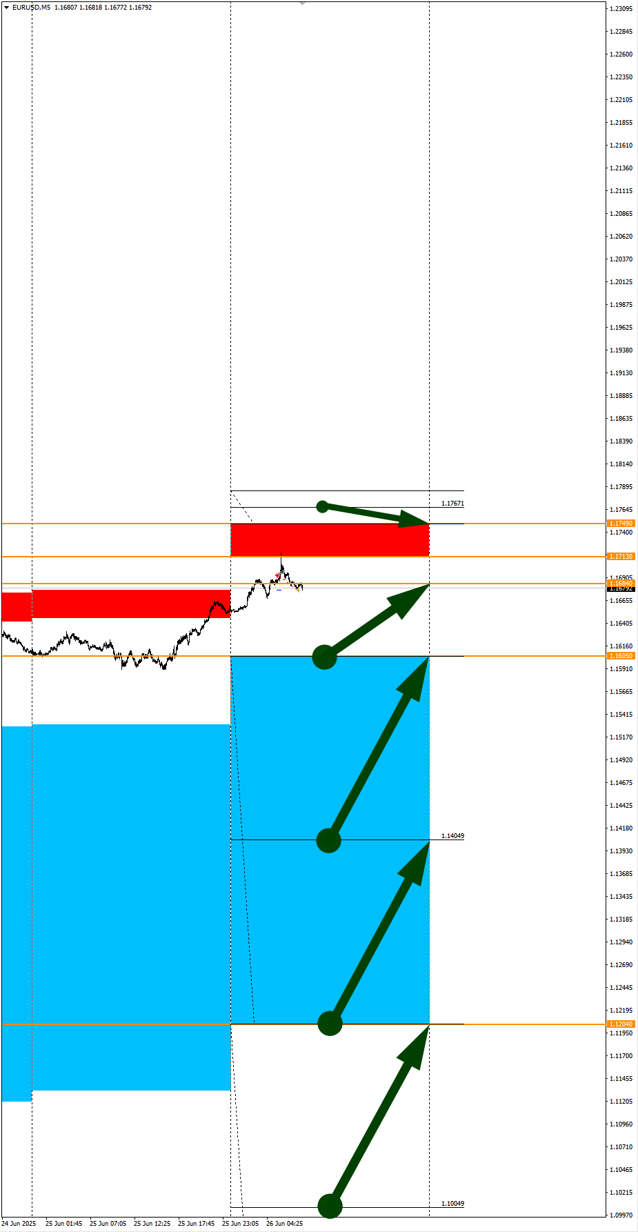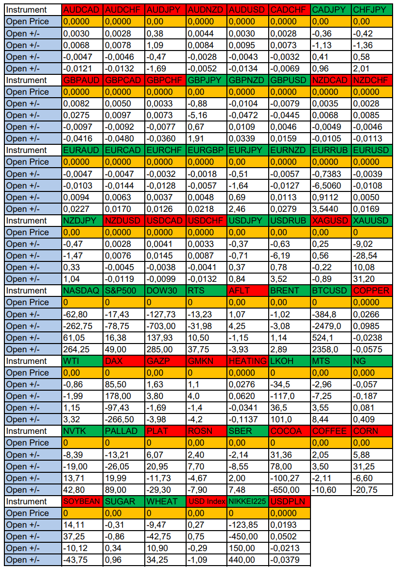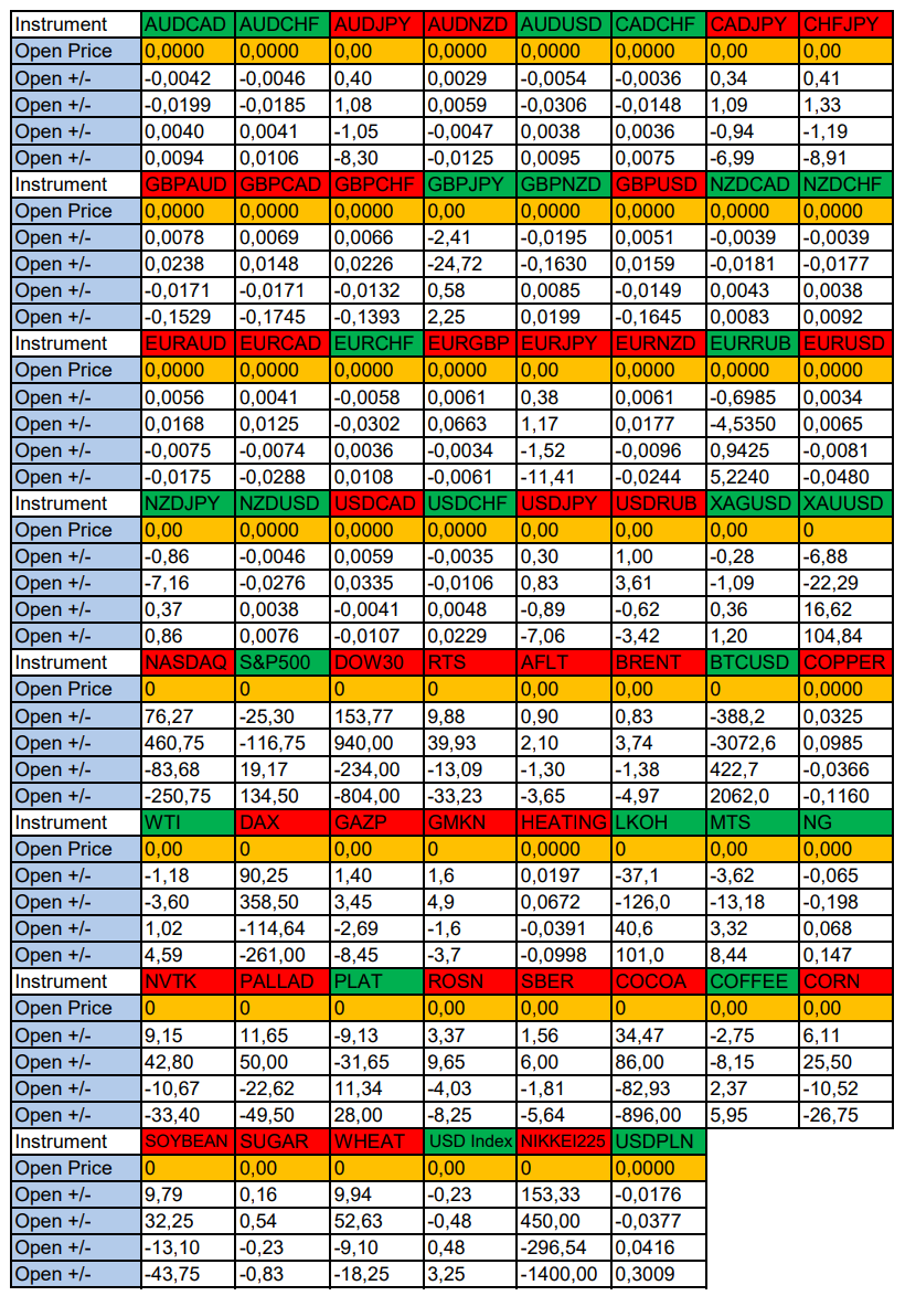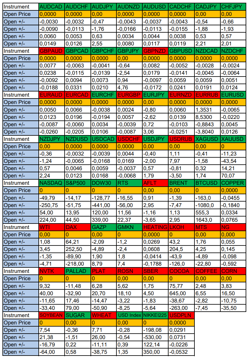 Валюты в фокусе дня. Сезонные тенденции и вероятности на Четверг 26.06.2025 Здравствуйте Уважаемые трейдеры! С Вами снова Александр Борских. Подготовил для Вас свежую информацию. Очередные сезонные тенденции на Четверг 26 Июня 2025 по основным мажорам финансовых рынков. Весь перечень анализируемых активов указан ниже в общем количестве 62 инструмента. Здесь Вы найдете активы рынка Форекс, популярные активы Московской биржи, не менее популярные активы Чикагской биржи СМЕ и мажор криптовалютного сегмента - Биткоин, за которым следуют все альткоины. Первый блок информации с зонами лимитных покупок и продаж. Данная информация включает в себя не только статистический показатель волатильности каждого актива, но и ближайшие опционные страйки с учетом премий за риск (Для верных расчетов рекомендуется просмотреть теоретическое видео в свободном доступе - Как использовать блок сезонности). А теперь сам блок информации №1: Второй блок информации с направленным вектором движения и вероятностями (внимательно обращаем внимание на цену открытия каждого актива. Обязательно для верных расчетов берем только цену открытия спотового актива). Как использовать вероятности в отношении цены открытия спотового актива - смотрим видео в открытом доступе (Как использовать блок сезонности). Данная информация с вероятностями поможет определить какова вероятность закрытия дня в отношении цены открытия этого же дня. А теперь сам блок информации №2: А теперь примеры построения блоков лимитных позиций и уточнение по сезонности с вероятностями отработки каждого актива по основным мажорам. По остальным активам, просмотрев теоретическое видео (Как использовать блок сезонности) - сможете построить лимитные блоки покупок и продаж самостоятельно. Ниже для примера продемонстрирую на сегодняшний день три основных мажора: Евро (EURUSD), Золото (XAUUSD), индекс НАСДАК (NASDAQ). EURUSD По Евро сегодня вероятность 67% к закрытию дня закрыть день ниже цены открытия дня 1,1684 Зона покупок 1,1605-1,1204 с целью 1,1684. Покупки в приоритете пока фон доллара США слабый Зона продаж 1,1713-1,1749. Но новые продажи ожидаем от уровня 1,17671 и выше с целью 1,1749. В продажах сокращаем торговый объем раза в 4, т.к. общий тренд восходящий. XAUUSD По Золоту сегодня вероятность 60% к закрытию дня закрыть день ниже цены открытия дня 3338,91. Зона покупок 3324,23-3283,72. Но новые покупки ожидаем от уровня 3263,44 и ниже с целью 3283,72. В покупках сокращаем торговый объем раза в 4, т.к. баланс. Зона продаж 3352,19-3443,75. Но новые продажи ожидаем от уровня 3489,85 и выше с целью 3443,75. В продажах сокращаем торговый объем раза в 4, т.к. баланс. NASDAQ По индексу сегодня вероятность 60% к закрытию дня закрыть день выше цены открытия дня 22270,00. Зона покупок 22200,72-22007,25 с целью 22270,00. Покупки в приоритете пока фон доллара США слабый. Зона продаж 22339,33-22730,75. Но новые продажи ожидаем от уровня 22926,39 и выше с целью 22730,75. В продажах сокращаем торговый объем раза в 4, т.к. общий тренд восходящий. А теперь новостная лента ожиданий аналитических агентств и разбор отдельных показателей на сегодняшний день, чего ожидать на основных торговых сессиях. Также укажем фон доллара США, сильный на текущий момент или же слабый. От фона доллара США будет зависеть направленное движение самой пары. НОВОСТИ сегодня: Фон доллара США слабый 15:30 МСК - ожидания укрепления доллара США USD 17:00 - ожидания частичн