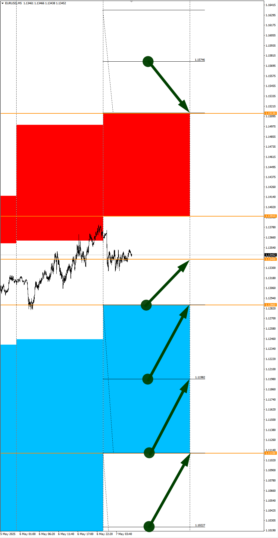 Опубликовано 7 мая, 20257 май Автор Ставка USD в фокусе дня. Сезонные тенденции и вероятности на Среду 07.05.2025Здравствуйте Уважаемые трейдеры! Александр Борских подготовил для Вас свежую информацию.Очередные сезонные тенденции на Среду 07 Мая 2025 по основным мажорам финансовых рынков.Весь перечень анализируемых активов указан ниже в общем количестве 61 инструмента. Здесь Вы найдете активы рынка Форекс, популярные активы Московской биржи, не менее популярные активы Чикагской биржи СМЕ и мажор криптовалютного сегмента - Биткоин, за которым следуют все альткоины.Первый блок информации с зонами лимитных покупок и продаж. Данная информация включает в себя не только статистический показатель волатильности каждого актива, но и ближайшие опционные страйки с учетом премий за риск (Для верных расчетов рекомендуется просмотреть теоретическое видео в свободном доступе - Как использовать блок сезонности). А теперь сам блок информации №1:Второй блок информации с направленным вектором движения и вероятностями (внимательно обращаем внимание на цену открытия каждого актива. Обязательно для верных расчетов берем только цену открытия спотового актива). Как использовать вероятности в отношении цены открытия спотового актива - смотрим видео в открытом доступе (Как использовать блок сезонности). Данная информация с вероятностями поможет определить какова вероятность закрытия дня в отношении цены открытия этого же дня.А теперь сам блок информации №2:А теперь примеры построения блоков лимитных позиций и уточнение по сезонности с вероятностями отработки каждого актива по основным мажорам. По остальным активам, просмотрев теоретическое видео (Как использовать блок сезонности) - сможете построить лимитные блоки покупок и продаж самостоятельно. Ниже для примера продемонстрирую на сегодняшний день три основных мажора: Евро (EURUSD), Золото (XAUUSD), индекс НАСДАК (NASDAQ).EURUSDПо Евро сегодня вероятность 53% к закрытию дня закрыть день выше цены открытия дня 1,1340.Зона покупок 1,1286-1,1110 с целью 1,1340. Покупки в приоритете пока фон доллара США слабый.Зона продаж 1,1391-1,1513. Но новые продажи ожидаем от уровня 1,15746 и выше с целью 1,1513. В продажах сокращаем торговый объем раза в 4.XAUUSDПо Золоту сегодня вероятность 53% к закрытию дня закрыть день ниже цены открытия дня 3399,47.Зона покупок 3387,17-3347,04 с целью 3399,47. Часть покупок отработали на азии от уровня 3387,17 с целью 3399,47, а также от уровня 3367,20 с целью 3387,17. Новые покупки ожидаем от уровня 3347,04 и ниже с целями на графике. Покупки в приоритете пока фон доллара США слабый.Зона продаж 3410,53-3435,41. Но новые продажи ожидаем от уровня 3447,85 и выше с целью 3435,41. В продажах сокращаем торговый объем раза в 4, т.к. общий тренд пока еще восходящий.NASDAQПо индексу сегодня вероятность 67% к закрытию дня закрыть день выше цены открытия дня 19985,00.Зона покупок 19948,75-19821,50. Но покупки уже с открытия дня отработали от уровня 19757,45 с целью 19821,50. Новые покупки ожидаем от уровня 19722,32 и ниже с целью 19821,50. В покупках сокращаем торговый объем раза в 4, т.к. баланс.Зона продаж 20064,34-20284,00. Но новые продажи ожидаем от уровня 20393,28 и выше с целью 20284,00. В продажах сокращаем торговый объем раза в 4, т.к. баланс.А теперь новостная лента ожиданий аналитических агентств и разбор отдельных показателей на сегодняшний день, чего ожидать на основных торговых сессиях. Также укажем фон доллара США, си