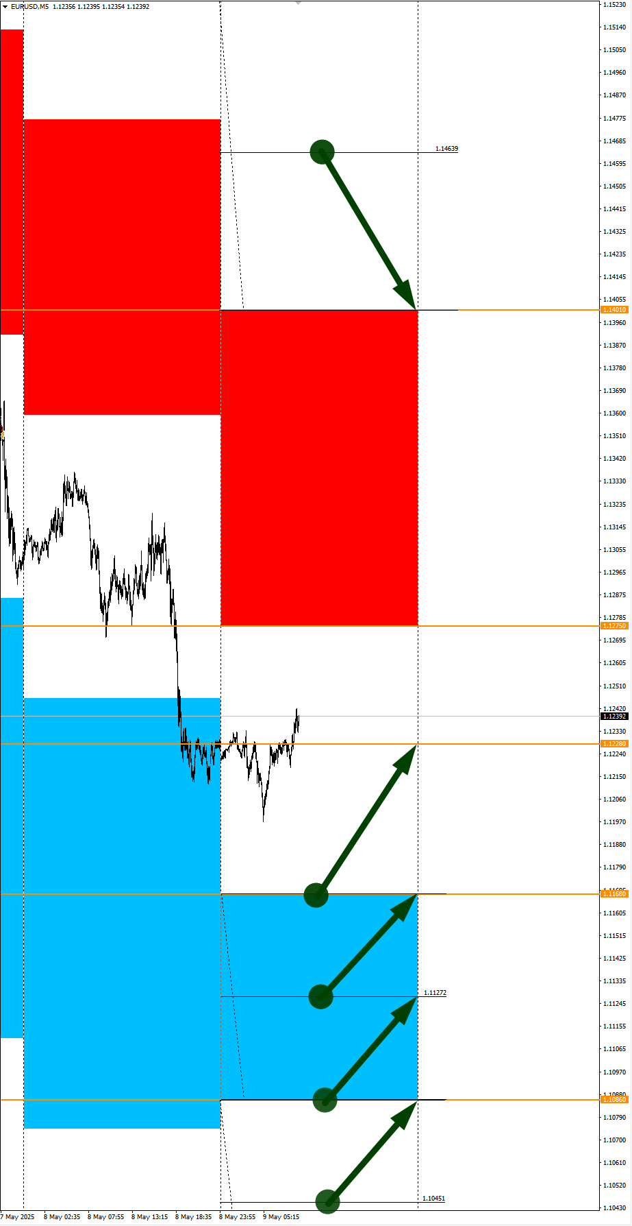 Опубликовано 9 мая, 20259 май Автор Сезонные тенденции и вероятности на Пятницу 09.05.2025Здравствуйте Уважаемые трейдеры! С Вами снова Александр Борских. Подготовил для Вас свежую информацию.Очередные сезонные тенденции на Пятницу 09 Мая 2025 по основным мажорам финансовых рынков.Весь перечень анализируемых активов указан ниже в общем количестве 61 инструмента. Здесь Вы найдете активы рынка Форекс, популярные активы Московской биржи, не менее популярные активы Чикагской биржи СМЕ и мажор криптовалютного сегмента - Биткоин, за которым следуют все альткоины.Первый блок информации с зонами лимитных покупок и продаж. Данная информация включает в себя не только статистический показатель волатильности каждого актива, но и ближайшие опционные страйки с учетом премий за риск (Для верных расчетов рекомендуется просмотреть теоретическое видео в свободном доступе - Как использовать блок сезонности). А теперь сам блок информации №1:Второй блок информации с направленным вектором движения и вероятностями (внимательно обращаем внимание на цену открытия каждого актива. Обязательно для верных расчетов берем только цену открытия спотового актива). Как использовать вероятности в отношении цены открытия спотового актива - смотрим видео в открытом доступе (Как использовать блок сезонности). Данная информация с вероятностями поможет определить какова вероятность закрытия дня в отношении цены открытия этого же дня.А теперь сам блок информации №2:А теперь примеры построения блоков лимитных позиций и уточнение по сезонности с вероятностями отработки каждого актива по основным мажорам. По остальным активам, просмотрев теоретическое видео (Как использовать блок сезонности) - сможете построить лимитные блоки покупок и продаж самостоятельно. Ниже для примера продемонстрирую на сегодняшний день три основных мажора: Евро (EURUSD), Золото (XAUUSD), индекс НАСДАК (NASDAQ).EURUSDПо Евро сегодня вероятность 60% к закрытию дня закрыть день ниже цены открытия дня 1,1228.Зона покупок 1,1168-1,1086 с целью 1,1228. Покупки в приоритете пока фон доллара США слабый.Зона продаж 1,1275-1,1401. Но новые продажи ожидаем от уровня 1,14639 и выше с целью 1,1401. В продажах сокращаем торговый объем раза в 4.XAUUSDПо Золоту сегодня вероятность 53% к закрытию дня закрыть день ниже цены открытия дня 3316,32.Зона покупок 3304,85-3283,88 с целью 3316,32. Часть покупок отработали на азии от уровня 3304,85 с целью 3316,32; от уровня 3294,45 с целью 3304,85; от уровня 3283,88 с целью 3294,45. Новые покупки ожидаем от уровня 3273,59 с целью 3283,88. Покупки в приоритете пока общий тренд снова восходящий (контролируем возможности выхода в баланс)Зона продаж 3326,60-3354,87. Но новые продажи ожидаем от уровня 3369,16 и выше с целью 3354,87. В продажах сокращаем торговый объем раза в 4.NASDAQПо индексу сегодня вероятность 67% к закрытию дня закрыть день выше цены открытия дня 20062,00.Зона покупок 19997,87-19592,25 с целью 20062,00. Покупки в приоритете пока фон доллара США слабый, внимательно следим за возможным переходом в баланс.Зона продаж 20106,87-20265,50. Но новые продажи ожидаем от уровня 20345,14 и выше с целью 20265,50. В продажах сокращаем торговый объем раза в 4.А теперь новостная лента ожиданий аналитических агентств и разбор отдельных показателей на сегодняшний день, чего ожидать на основных торговых сессиях. Также укажем фон доллара США, сильный на текущий момент или же слабый. От фона доллара США будет за
