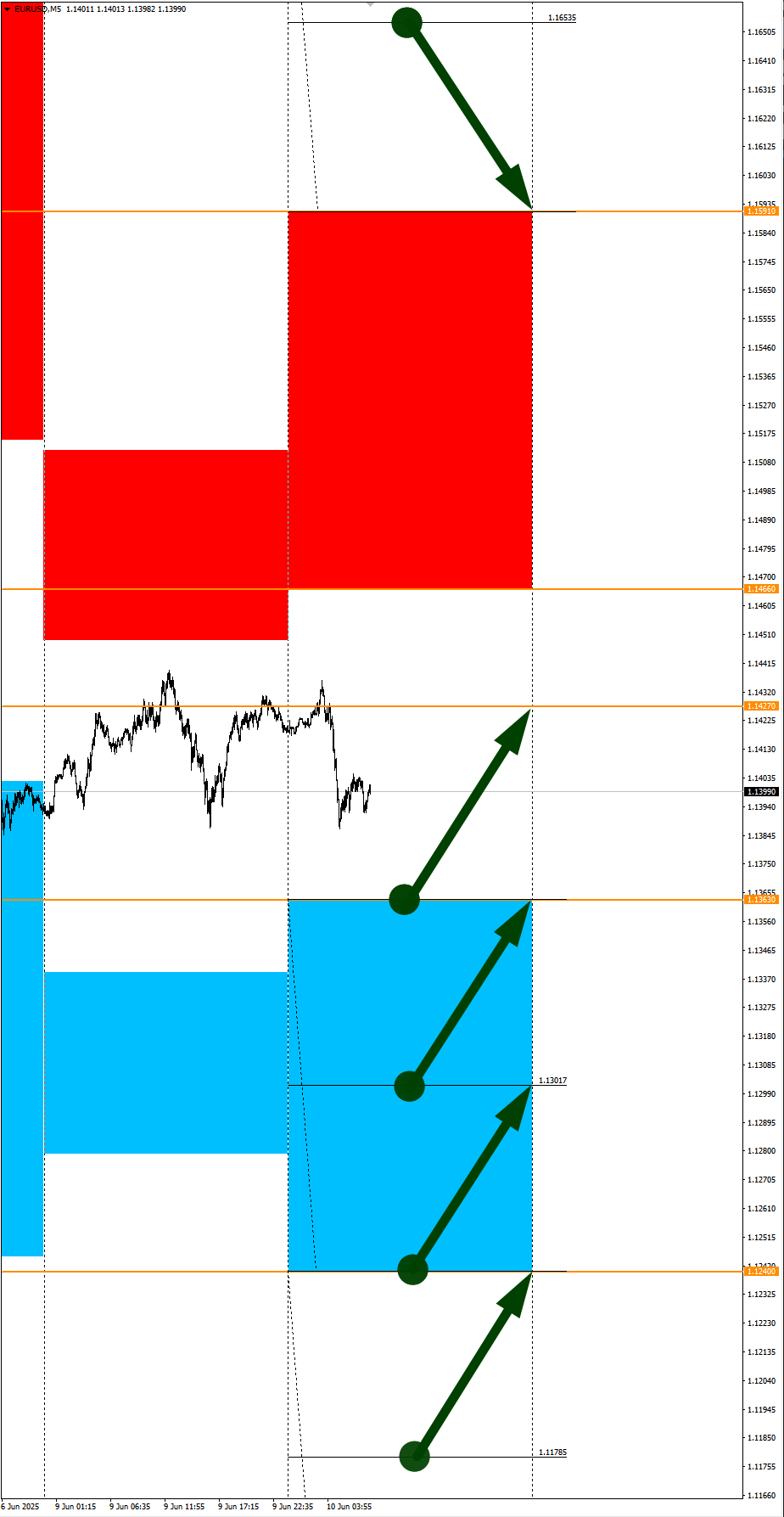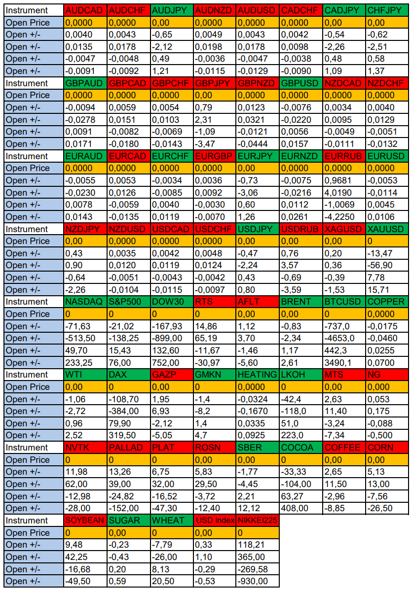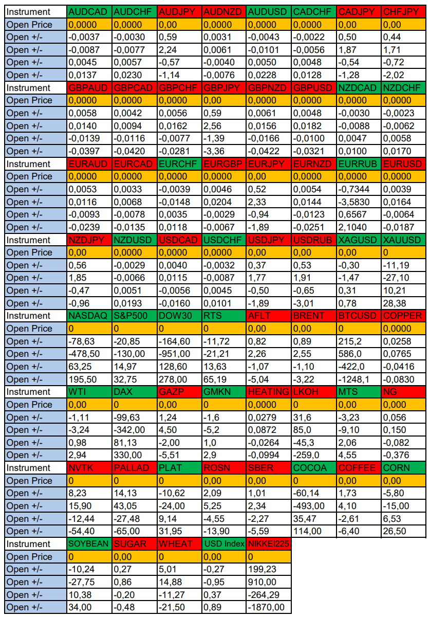 Опубликовано 10 июня, 202510 июнь Автор Валюты в фокусе дня. Сезонные тенденции и вероятности на Вторник 10.06.2025Здравствуйте Уважаемые трейдеры! С Вами снова Александр Борских. Подготовил для Вас свежую информацию.Очередные сезонные тенденции на Вторник 10 Июня 2025 по основным мажорам финансовых рынков.Весь перечень анализируемых активов указан ниже в общем количестве 61 инструмента. Здесь Вы найдете активы рынка Форекс, популярные активы Московской биржи, не менее популярные активы Чикагской биржи СМЕ и мажор криптовалютного сегмента - Биткоин, за которым следуют все альткоины.Первый блок информации с зонами лимитных покупок и продаж. Данная информация включает в себя не только статистический показатель волатильности каждого актива, но и ближайшие опционные страйки с учетом премий за риск (Для верных расчетов рекомендуется просмотреть теоретическое видео в свободном доступе - Как использовать блок сезонности). А теперь сам блок информации №1:Второй блок информации с направленным вектором движения и вероятностями (внимательно обращаем внимание на цену открытия каждого актива. Обязательно для верных расчетов берем только цену открытия спотового актива). Как использовать вероятности в отношении цены открытия спотового актива - смотрим видео в открытом доступе (Как использовать блок сезонности). Данная информация с вероятностями поможет определить какова вероятность закрытия дня в отношении цены открытия этого же дня.А теперь сам блок информации №2:А теперь примеры построения блоков лимитных позиций и уточнение по сезонности с вероятностями отработки каждого актива по основным мажорам. По остальным активам, просмотрев теоретическое видео (Как использовать блок сезонности) - сможете построить лимитные блоки покупок и продаж самостоятельно. Ниже для примера продемонстрирую на сегодняшний день три основных мажора: Евро (EURUSD), Золото (XAUUSD), индекс НАСДАК (NASDAQ).EURUSDПо Евро сегодня вероятность 73% к закрытию дня закрыть день ниже цены открытия дня 1,1427.Зона покупок 1,1363-1,1240 с целью 1,1427. Покупки в приоритете пока фон доллара США слабый.Зона продаж 1,1466-1,1591. Но новые продажи ожидаем от уровня 1,16535 и выше с целью 1,1591. В продажах сокращаем торговый объем раза в 4, т.к. общий тренд восходящий.XAUUSDПо Золоту сегодня вероятность 67% к закрытию дня закрыть день выше цены открытия дня 3326,52.Зона продаж 3336,73-3354,90. Но новые продажи ожидаем от уровня 3364,07 и выше с целью 3354,90. В продажах сокращаем торговый объем раза в 4, т.к. баланс.Зона покупок 3315,33-3299,42. Но новые покупки ожидаем от уровня 3291,54 и ниже с целью 3299,42. В покупках сокращаем торговый объем раза в 4, т.к. баланс.NASDAQПо индексу сегодня вероятность 67% к закрытию дня закрыть день выше цены открытия дня 21813,00.Зона покупок 21734,37-21334,50 с целью 21813,00. Покупки в приоритете пока фон доллара США слабый.Зона продаж 21876,25-22008,50. Но новые продажи ожидаем от уровня 22074,66 и выше с целью 22008,50. В продажах сокращаем торговый объем раза в 4, т.к. тренд восходящий.А теперь новостная лента ожиданий аналитических агентств и разбор отдельных показателей на сегодняшний день, чего ожидать на основных торговых сессиях. Также укажем фон доллара США, сильный на текущий момент или же слабый. От фона доллара США будет зависеть направленное движение самой пары.НОВОСТИ сегодня:Фон доллара США слабый09:00 МСК - ожидания частичного ослабления GBP10:00 - 